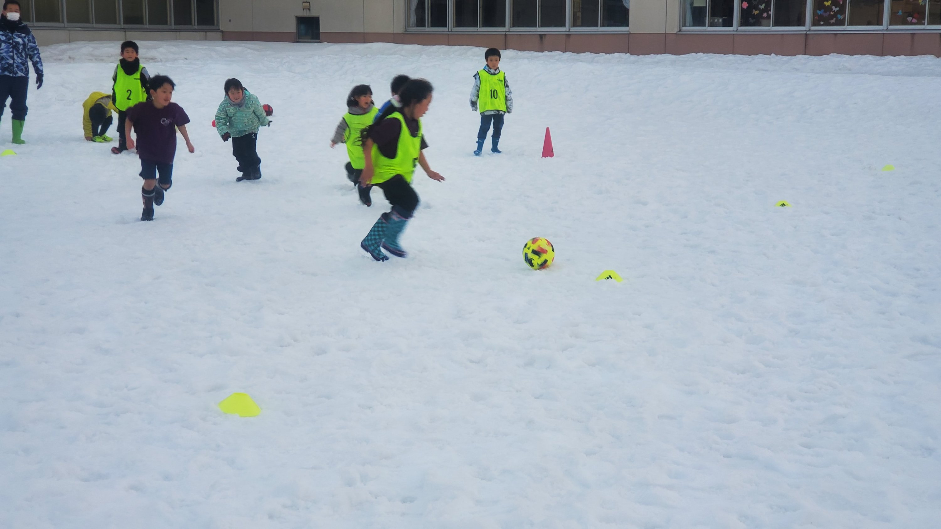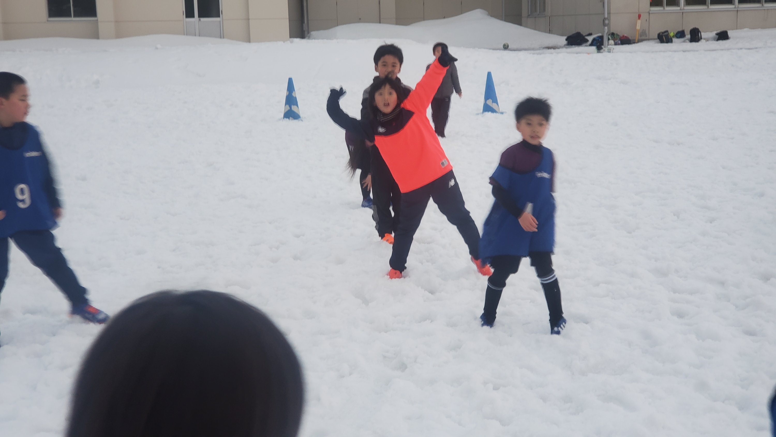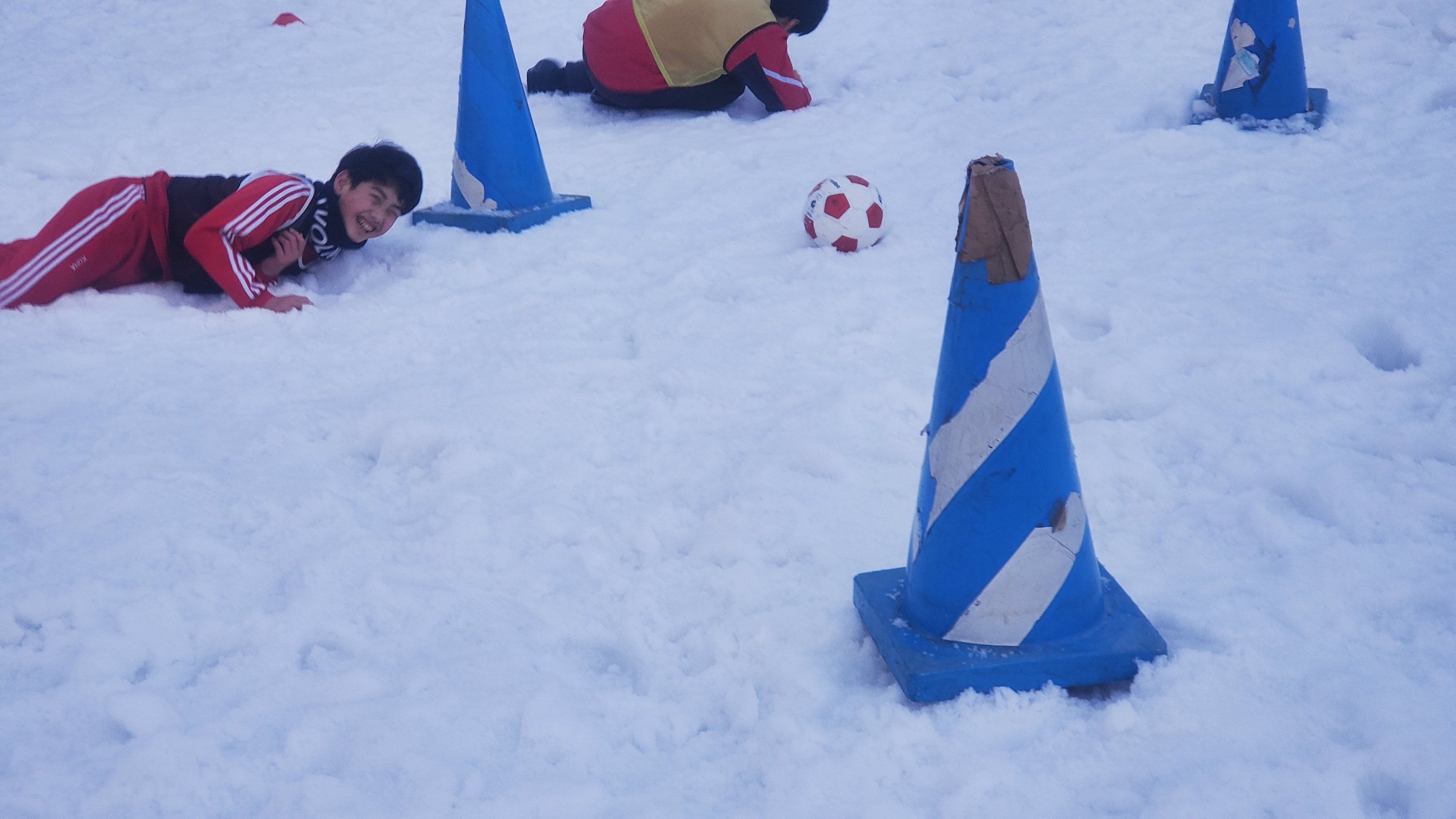 グランドでの雪中サッカーが始まりました。