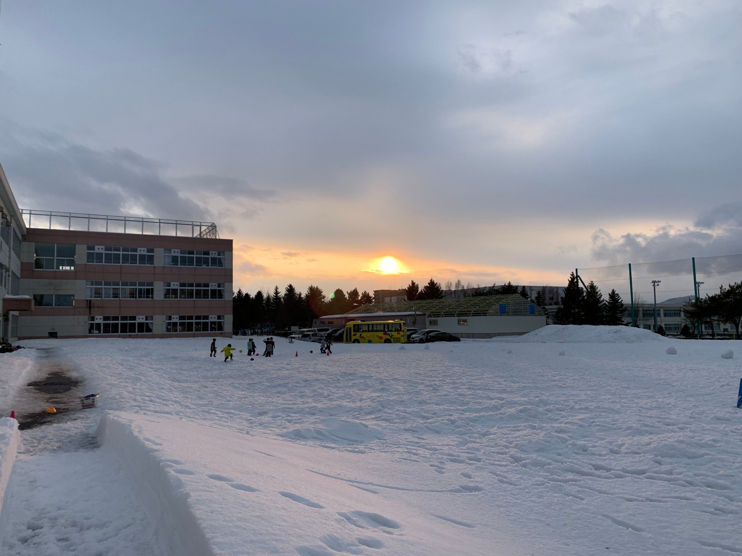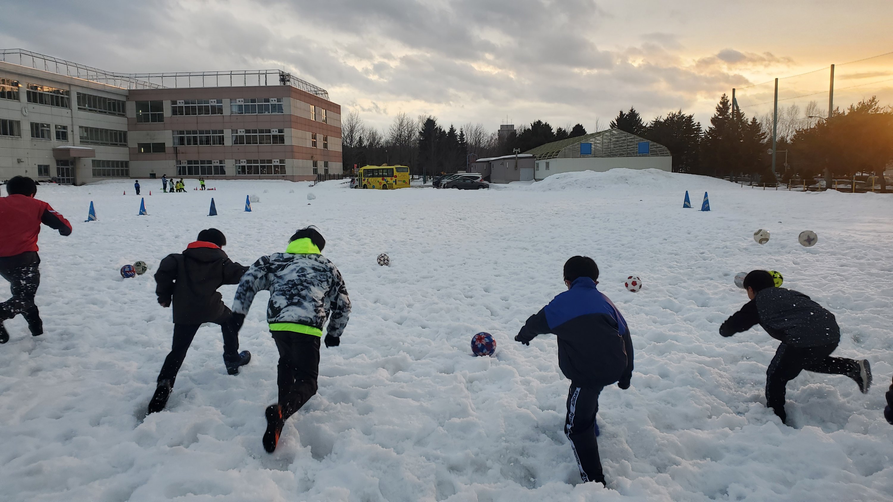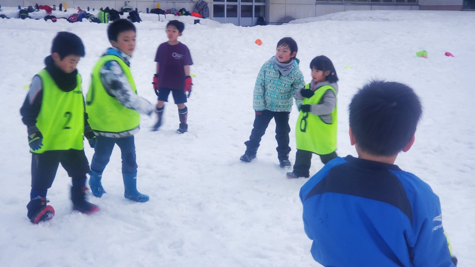 グランドでの雪中サッカーが始まりました。