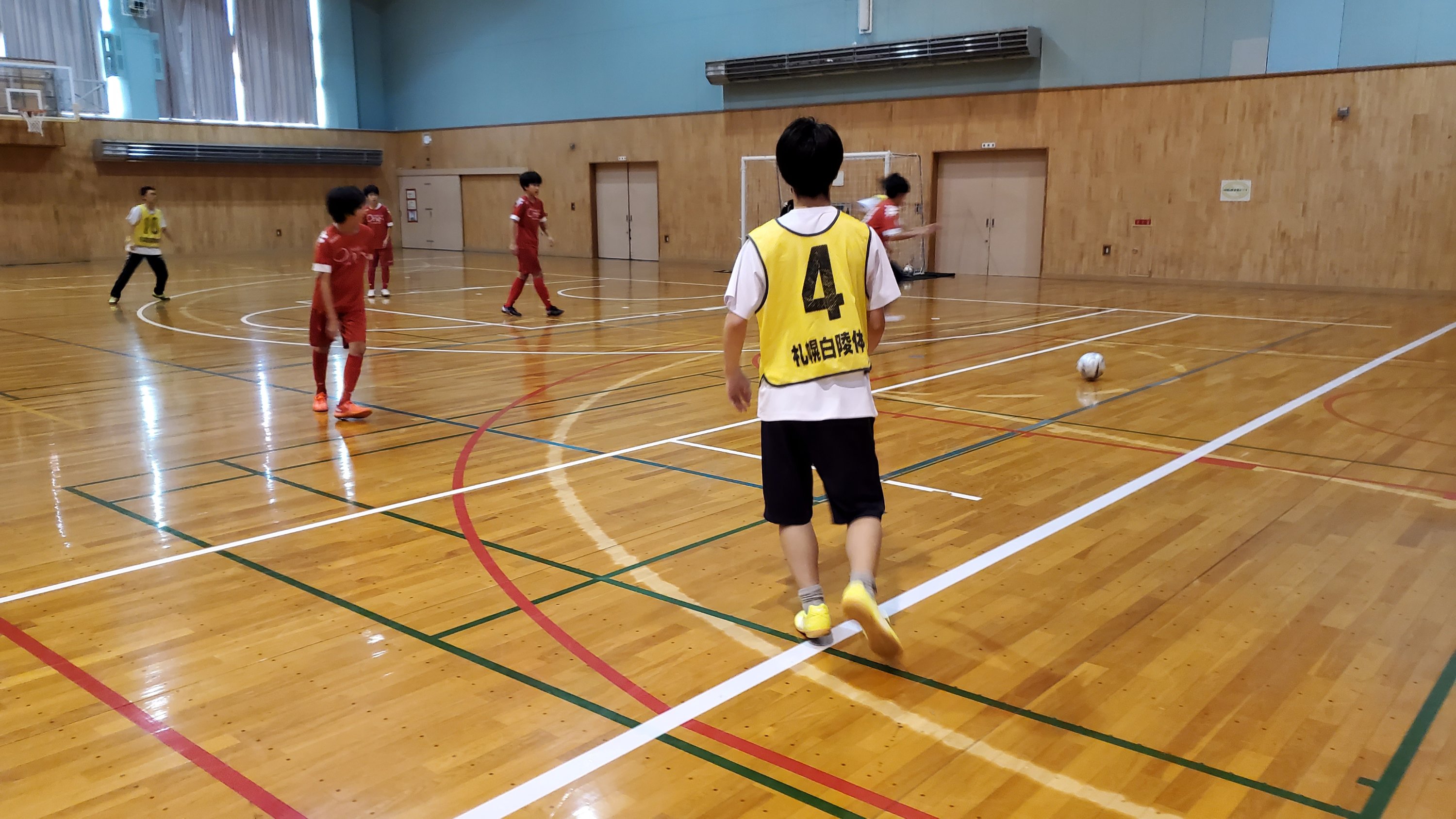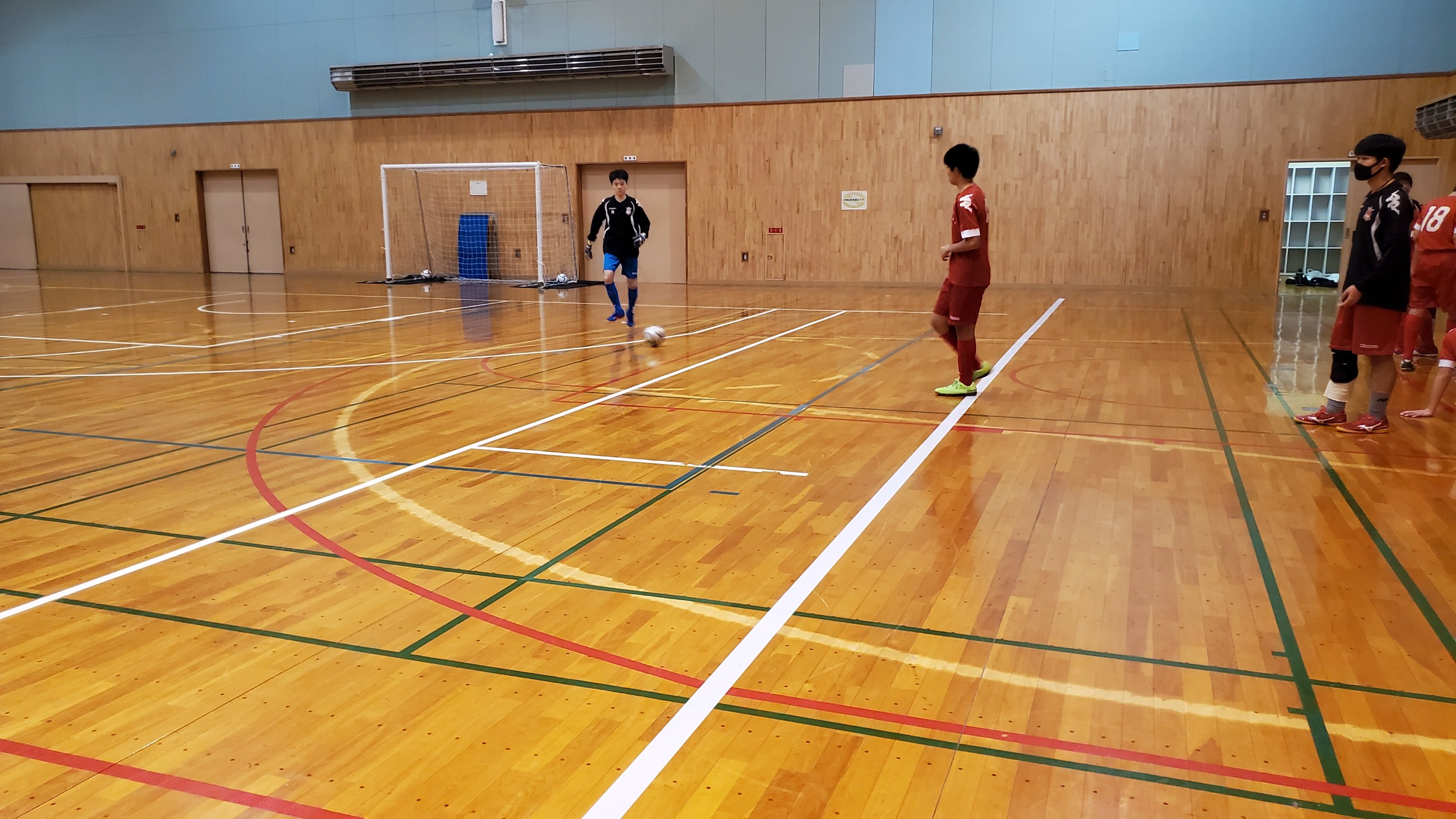 室内に入り、ボールの持ち方やボールの置き所、個の部分にフォーカスし取り組んでいます。
